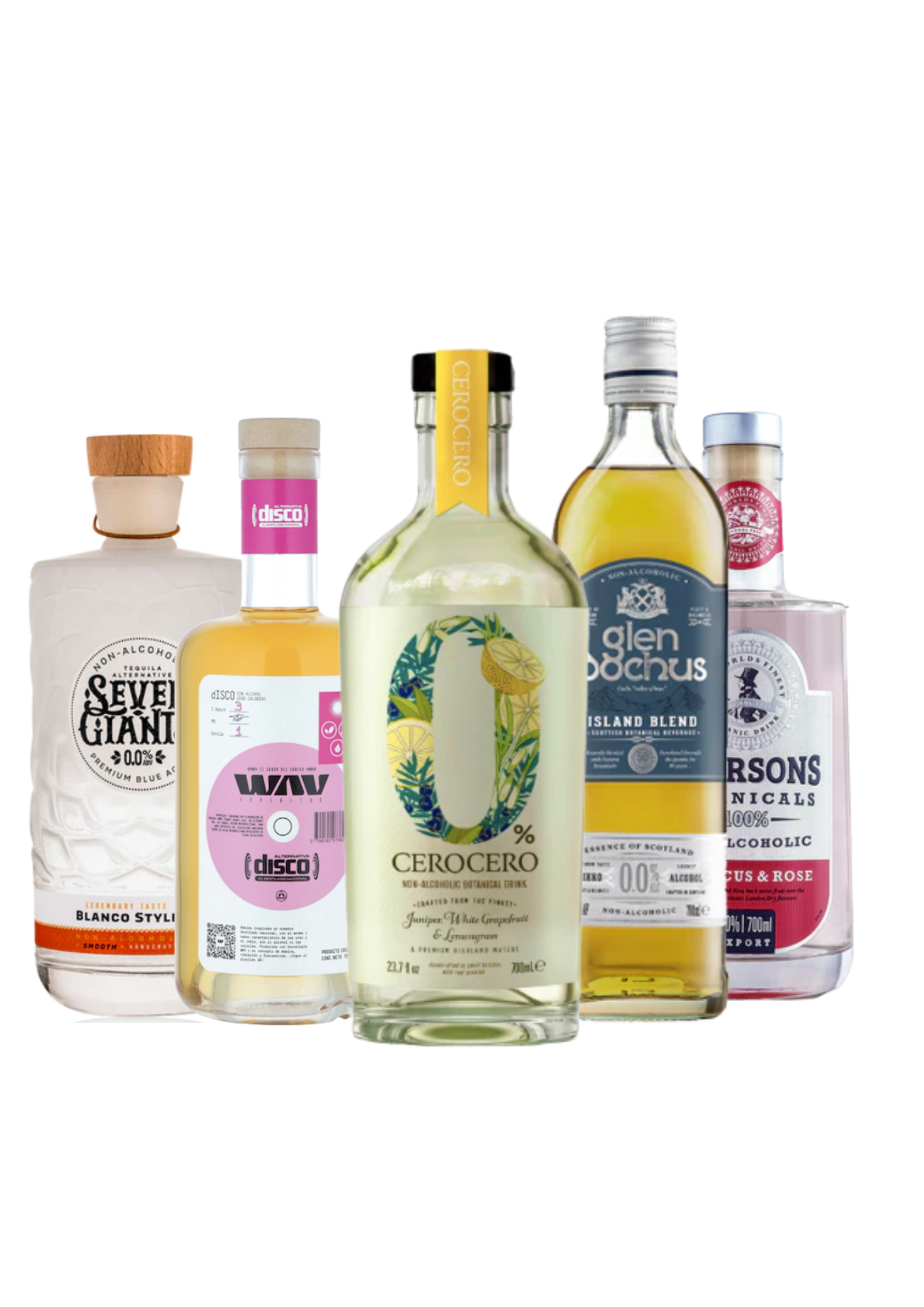 Este pack es para quienes quieren tenerlo TODO. Cinco destilados sin alcohol que imitan a la perfección los clásicos del bar, pero sin sus efectos secundarios: