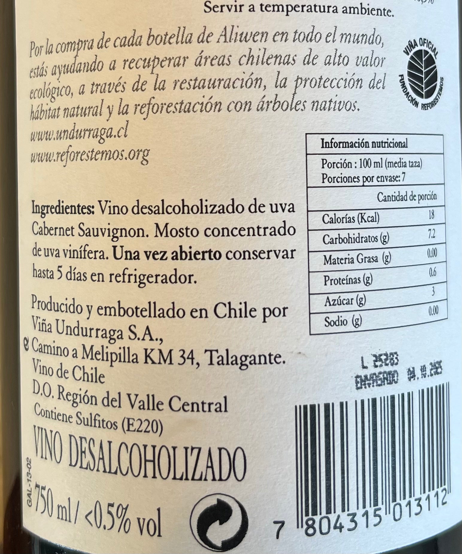 Aliwen Alcohol Free cabernet sauvignon, es un vino perfecto para beber solo, o como sangría para estas calurosas tardes de verano.